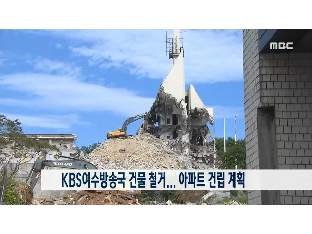 KBS여수방송국 건물이아파트 건축을 위해 철거됩니다.여수시에 따르면지난해 8월에 39억여원에 공개 매각된 KBS여수방송국 부지에는 현재의 방송국 시설이 철거된 후20층 아파트 285세대가 들어설 예정입니다.KBS여수방송국은지난 1989년에 현재 건물이 신축됐으며2004년, 군산, 남원, 속초방송국 등과 함께 폐쇄됐습니다....