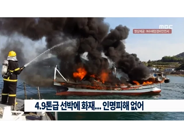오늘(18) 오후 3시 20분쯤여수시 화양면 힛도 앞 해상을 지나던4.9톤급 어선에 화재가 발생해선체 일부를 태운 뒤한 시간 만에 진화됐습니다.당시 선박에는 선장 54살 강 모 씨 등 2명이 타고 있었지만,주변에 있던 어선에 의해 구조돼인명피해는 없었습니다.해경은 선박 기관실에서 불이 시작됐다는선장의 진술을 토대로 ...