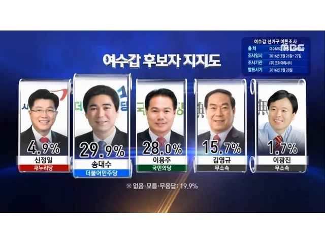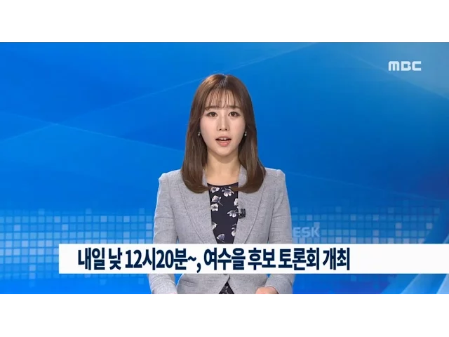 20대 총선, 여수시 을 선거구 후보토론회가내일 낮 12시 20분, 여수MBC에서 열립니다.여수시 선거방송토론위원회는 내일(7일) 낮 12시20분부터 20대 국회의원 선거 여수시 을 선거구에 출마한새누리 김성훈, 더민주 백무현,국민의당 주승용, 정의당 황필환 후보 등 4명의 후보 토론회를 생방송으로 진행합니다.토론회에 이...