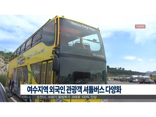 여수시가 해외 관광객 유치를 위해 관계기관과 합동으로 셔틀버스 운행을 다양화합니다. 여수시와 한국관광공사는지역 주요 관광지를 돌아볼 수 있는 외국인 관광객 셔틀버스를 최근 도입한데 이어,다음 달 말부터는일본인 관광객 전용 버스도 운행할 예정이라고 밝혔습니다. 이와 함께 여수시는 도심을 순환하는 2층 버스...