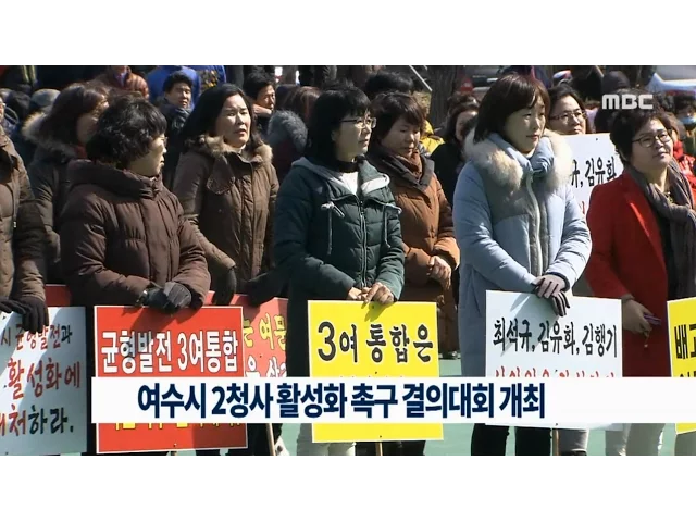 여수시 여문지구 상인들과 주민들이2청사 활성화를 위한 대책마련을 촉구했습니다.여수시 여서동 미관광장에서여문상가연합회와 주민5백여명이 참여한 가운데 열린 오늘 결의대회에서 참석자들은3청사 직원 배치를 위한 2청사내 건물 신축을 환영한다고 밝혔습니다.참석자들은 또,여수시 일부 의원들이자신의 정파와 지분을...