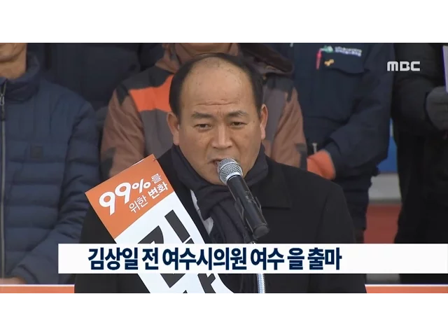 김상일 전 여수시의원이 제20대 국회의원 선거에서 여수을 지역구로 출마를 선언했습니다.김 전 의원은 오늘 기자회견에서1%에 의한 1%를 위한 정치가 아닌 여수의 수많은 노동자와 중소상인, 서민을 위한 99%의 정치를 위해 국회의원 선거에 출마했다고 밝혔습니다. 또 이윤보다 안전을 먼저 생각하는여수산단의 고용구조...