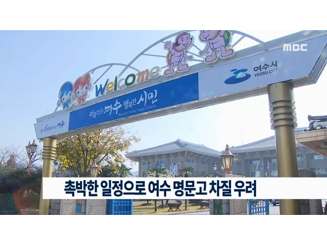 내년 3월초 개교예정으로 추진하던여수시의 명문고 설립 계획이촉박한 일정으로 차질이 우려되고 있습니다.여수시는 당초내년 3월 초 정원 6백명에 24학급 규모의명문 사립외고 개교를 목표로다양한 방안을 논의했지만아직까지 구체적인 학교 설립방안 조차 확정되지 않아 개교 일정을 맞추기가 쉽지 않게 됐습니다.특히 명...