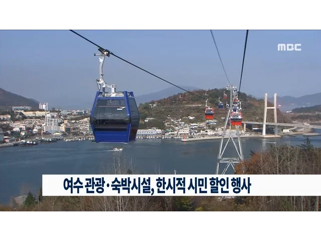 지난해 천3백만 관광객 돌파를 기념해여수 지역 관광시설에 대한할인 행사가 열립니다.여수시관광발전협의회는오는 6일부터 20일까지여수시민에 한해 해상케이블카 등19개 주요시설과 호텔급 숙박업소를50% 할인 가격에 이용할 수 있는특별 할인 이벤트를 개최합니다. 여수관광발전협의회는이번 행사가 지난해 천3백만명 관...