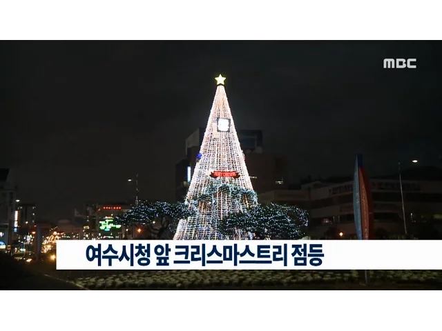 올 한해를 되돌아보며 시민 화합과 행복시정을 기원하는 성탄트리 점등식이 오늘 여수시청 앞 광장에서 열렸습니다.이번 행사는여수시기독교총연합회 주관으로 시민 백여명이 참석한 가운데 트리 점등과 관람의 순으로 진행됐습니다.오늘 불을 밝힌 트리는 내년 1월 31일까지 형형색색의 조명으로따뜻한 연말연시를 기원하...