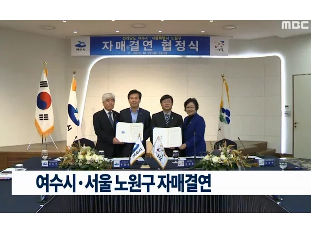 여수시와 서울시 노원구가자매 결연을 하고 협력 사업을 펼치기로 했습니다.여수시는 오늘(27일)여수엠블호텔에서 서울시 노원구청과 자매결연 협정식을 갖고 지역 특산품의 판로 개척과 각종 재난.재해 사고때 교류.협력에 나서기로 했습니다.여수시는 또,이번 자매 결연을 통해우수 행정시책에 대한 정보 교환과노원구 ...