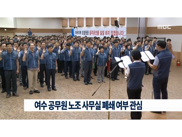 정부의 공무원노조 사무실 폐쇄 지침과 관련해 지역에서는 여수시가 해당돼관심이 모아지고 있습니다.행정자치부는전남 22개 시ㆍ군 가운데 전공노에 소속된 공무원노조는 모두 14곳이며이 가운데 여수와 순천, 나주 등 5개 지자체의 공무원노조는 정부가 불법 노조 활동을 하고 있다고 판단한법외 노조로 등록돼 있다고 ...