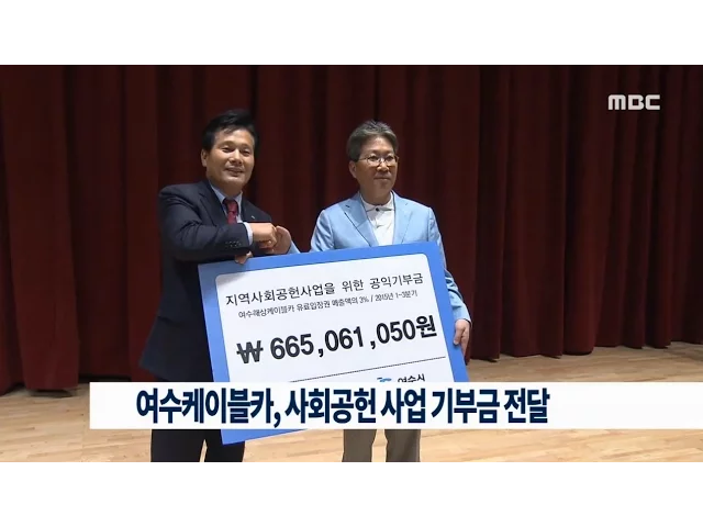 여수 해상 케이블카를 운행 중인포마 측이 매출액의 일부를사회 공헌 사업을 위한공익기금으로 기부했습니다.주식회사 포마는 오늘(7일)여수 문화홀에서지난해 12월부터 지난 9월까지티켓 판매 매출액의 3%에 해당하는6억 6천 6백만 원을 공익기부금 명목으로 여수시에 전달했습니다.기탁된 기부금은여수시 관광진흥기금으...