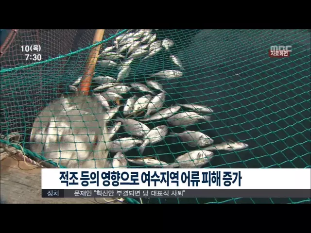 여수 해역에 발생한 적조로어민들의 피해가 커지고 있습니다. 여수시는 최근 돌산 두문포 육상 양식장에서전복 28만 마리가 폐사한 원인을 조사한 결과적조의 직·간접적 영향으로수조에 암모니아 농도가 높아지면서피해가 발생한 것으로 분석됐다고 밝혔습니다.또, 지난 8일 돌산 송도 가두리 양식장에서농어 10만 마리가 ...