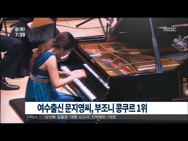 어려운 가정 환경속에서도여수 출신 피아니스트 문지영씨가 이탈리아에서 폐막한 ‘제60회 부조니 국제 피아노 콩쿠르’에서 1위를 차지해 눈길을 모으고 있습니다.부조니 국제 피아노 콩쿠르는 이탈리아의 세계적 피아니스트인 페루치오 부조니를 기리기 위해 1949년 창설된 대회로한국인으로는 이번에 문씨가 처음 1위를 ...