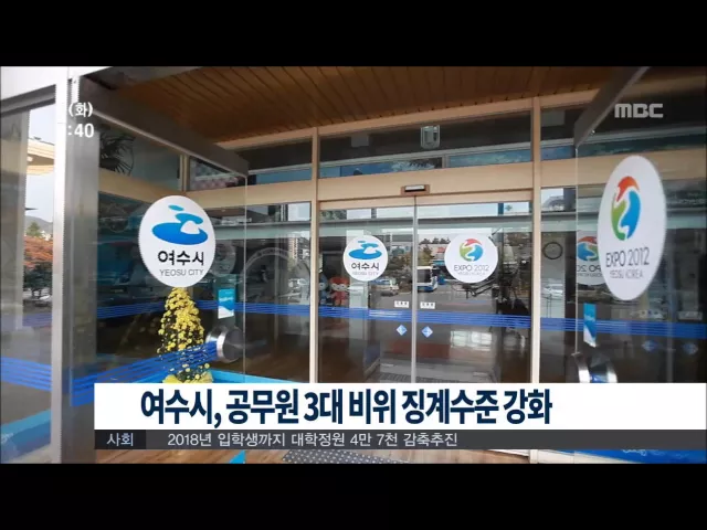 여수시가 공무원 비위행위에 대해징계 수준을 강화하고 나섰습니다.여수시는 이달 19일부터시 공무원을 대상으로성관련 비위와 금품수수, 음주운전 행위에 대한징계 수준을 강화하는공무원 징계령 시행규칙을 공포하고시행에 들어갔습니다.이번 시행규칙에 따르면업무상 우월한 지위를 이용한 성폭력자는파면이나 해임 등 ...