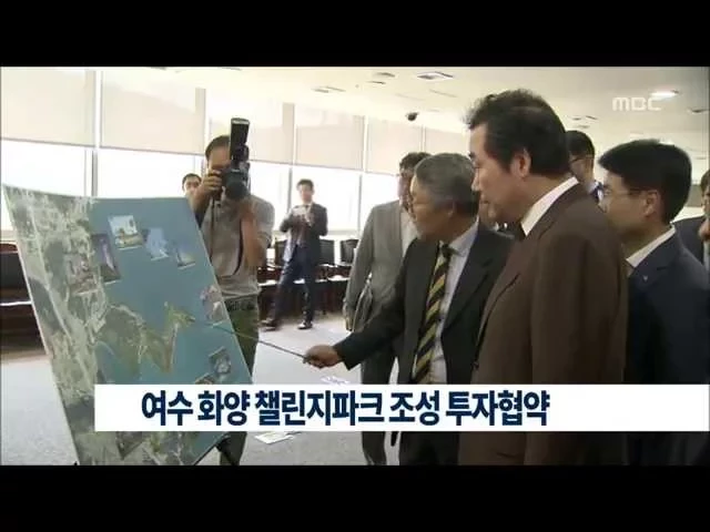 여수시 화양면에대규모 관광위락시설이 들어섭니다.여수시는 오늘전남도청 서재필실에서주식회사 오션포인트와 함께 여수시 화양면 나진리 일대59만제곱미터 부지에천4백억원 규모의 챌린지파크 관광단지 조성 투자협약을 체결했습니다.내년 관광단지 지정을 시작으로오는 2천19년 12월 준공하게 되는챌린지파크에는 짚와...