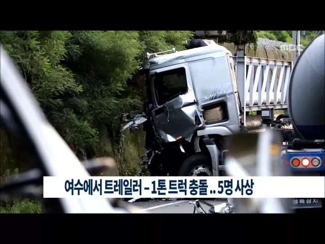 여수에서 트레일러-1톤 트럭 충돌..5명 사상