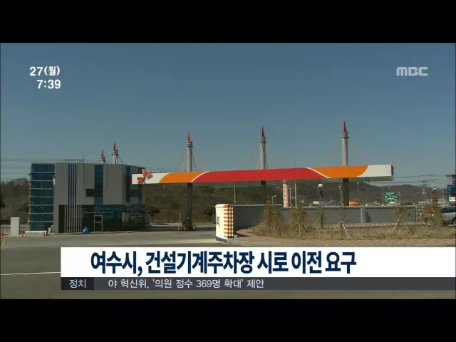 여수시가SK에너지측에 건설기계주차장을조속히 시로 이전시킬것을 주장했습니다.여수시는최근 지역 시민단체가주삼동에 건설해놓은SK에너지의 건설기계주차장이사회공헌사업이 아닌 영업에 불과하다는 주장과 관련해6개월재 방치되고 있는 주차장을 하루빨리 시로 이전시켜 시민들의 활용도를 높여야 한다고 강조했습니다....