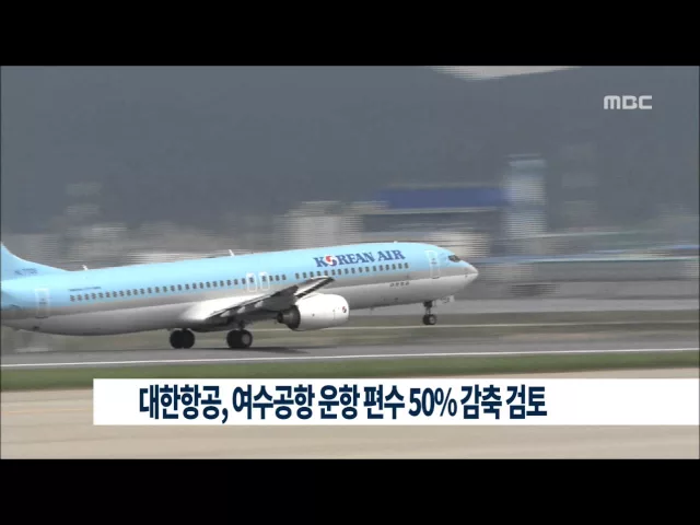 대한항공이 여수공항 운항 편수를 현재의 절반 수준으로 줄이는 방안을 검토하는 것으로 드러났습니다.여수시 등에 따르면 대한항공 관계자는 오늘(24) 여수시청을 방문해 다음 달부터 여수공항 운항 편수를 현재의 출발 4편, 도착 4편에서 각각 2편으로 줄이는 방안을 검토하고 있다고 밝혔습니다.여수시는 이에 대해 공...