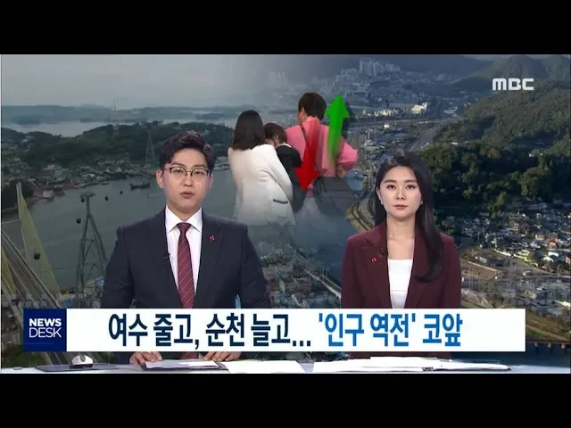 현재 도내 지자체별 인구는여수가 1위, 순천이 2위를 기록하고 있는데요.올해 들어 두 지역의 인구 격차가불과 3천 명대로 좁혀졌습니다. 이 같은 추세가 계속되면 이르면 내년쯤에는 인구가 역전될 가능성이 큽니다. 보도에 문형철 기자입니다.◀VCR▶[C/G 1 - 중앙 하단] 지난달 말 여수의 주민등록인구는 연초보다 2천 ...