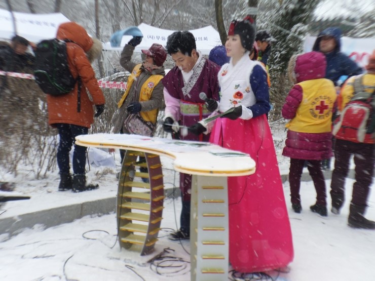 새해 첫날 거센 눈보라와 강력 한파에도 불구하고 전국에서 무등산 국립공원을 찾은 광복 7O주년 첫 해돋이 인파로 증심사지구 일대에 활기가 넘쳐 흘렀답니다 .
