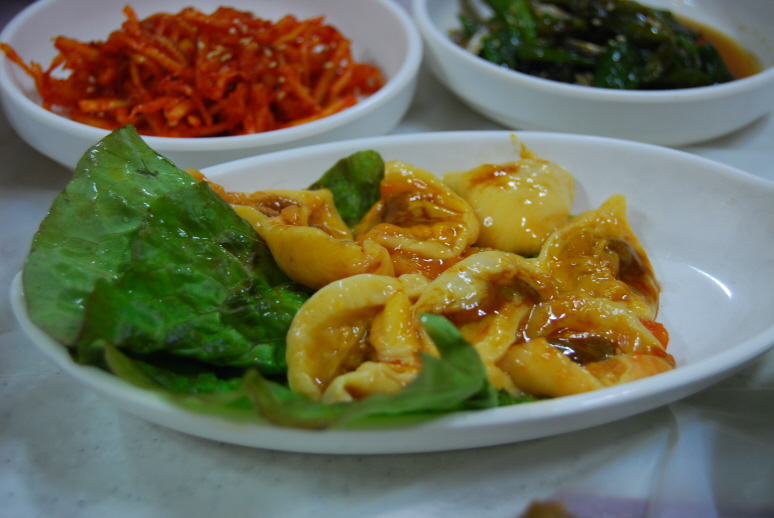 꼬막을 거의 다 먹을 때쯤 되니 반찬이 깔리기 시작.