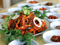 대통밥은 대나무통속에 오곡을 넣고 1시간정도를 쪄내서 대나무의 진향을 밥에서 느낄 수 있는것이 특징이다. 송죽정의 명성을 높이고 있는 또 다른 메뉴로는 죽순회를 꼽을수가 있다. 죽순회는 죽순에다 민물우렁, 여섯가지 산나물을 새콤달콤하게 묻히는것, 죽순이 들어감으로 무공해의 아삭아삭함을 느낄수 있어 웰빙시대 최고의 음식이라 자부한다.
