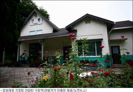 양평 구둔역은 하루 세 번 기차가 선다. 10여 년 전만 해도 경동시장으로 나물 팔러 가던 어르신, 통학하던 학생들로 붐비던 곳이고 임진왜란 때에는 전략적 요충지로 9개의 진지가 구축되었던 곳이지만 지금은 사람 얼굴 구경하기 힘들다. 구둔역은 현재 문화재청이 선정한 ‘등록문화재 제296호 대한민국 근대문화유산’으로 지정되어 있다. 건축미가 뛰어나고 서정성이 높은 곳이니 문화재로 지정된 구둔역은 이용하는 것 자체가 영광이다. 하지만 중앙선 복선화 공사가 완료되면 그마저도 어렵게 된다. 구둔역 지척에는 1925년 문을 열어 한결같은 맛을 지켜온 지평막걸리 술도가가 있고 한국의 토종 물고기를 모아놓은 경기도 민물고기연구소와 수령 천년의 은행나무가 멋진 용문사가 있다. 남한강과 북한강이 만나는 두물머리와 꽃으로 마음을 씻으라는 세미원이 볼만하다.