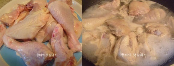 1....닭은 청주 1큰술,생강조금넣고 한번 삶아서 물을 버립니다...