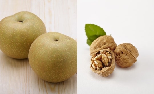 ◆배=글루타티온 성분을 함유하고 있다. 이 성분은 항산화 및 항암 효과가 있다. 혈압을 정상화시켜 뇌졸중을 예방한다.
